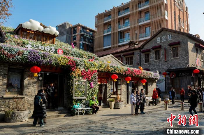 1月30日,游客穿梭于武昌古韵街巷寻年味。图为游客在武昌昙华林游玩。中新网