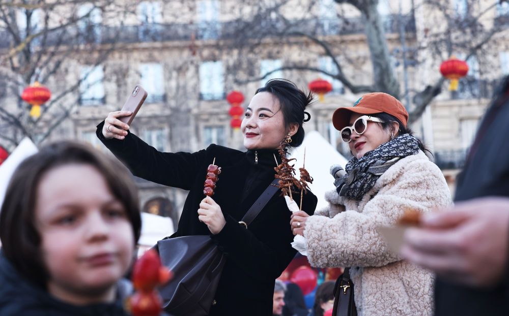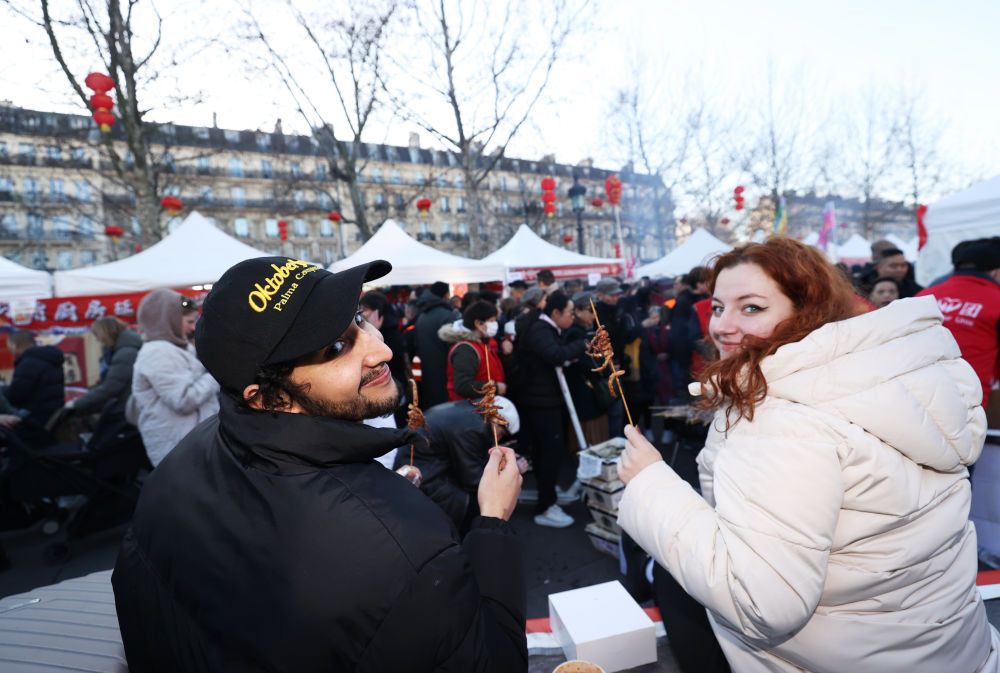 在法国巴黎共和国广场,人们参加旅法华侨华人春节庙会及美食节。新华社