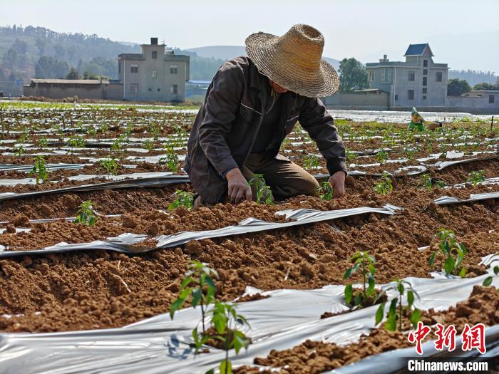 2月1日,云南个旧,村民在田间忙碌劳作。中新网