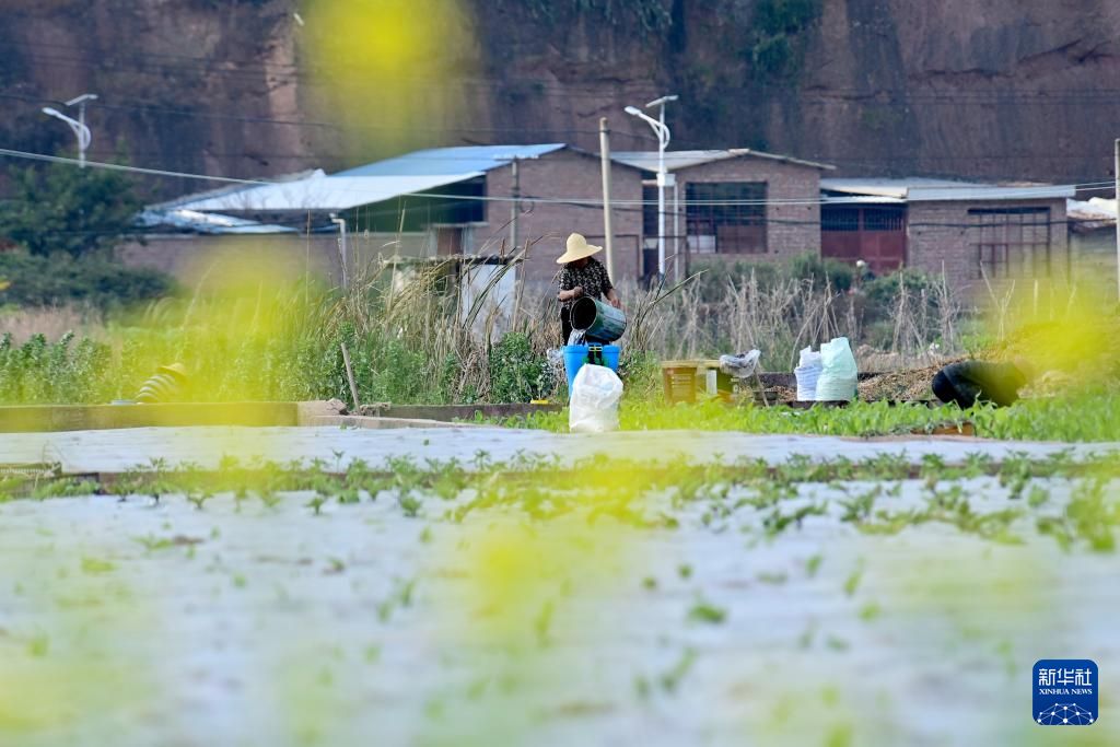 2月2日,农民在云南省大理白族自治州南涧彝族自治县南涧镇杨免庄村的蔬菜种植基地劳作。新华社