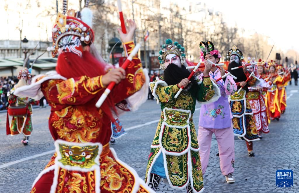 同一个世界,同一份喜悦,世界多地同贺中国年。连日来,中国火热的新春氛围持续传向海外,锣鼓的喧闹,龙狮的热情,多彩的民俗技艺……让海外民众沉浸在欢乐的年味里,根本停不下来。2月2日,“欢乐春节满巴黎,龙狮贺岁舞香街”春节巡游活动在巴黎香榭丽舍大街举行,庆祝蛇年春节到来,向当地民众送上新春祝福。中新社