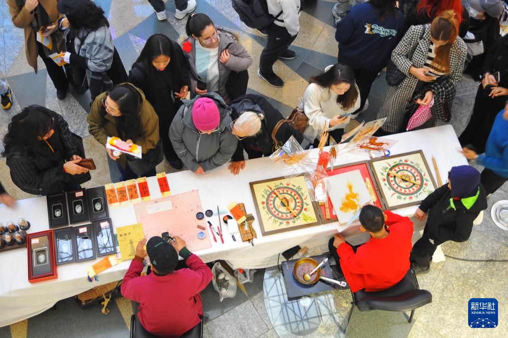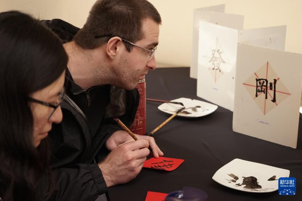 2月1日,人们在美国洛杉矶亨廷顿图书馆举行的春节庆祝活动上学习中国书法。新华社