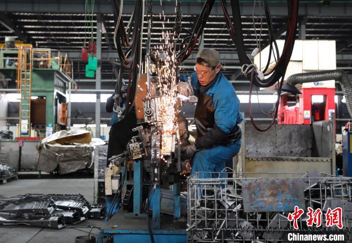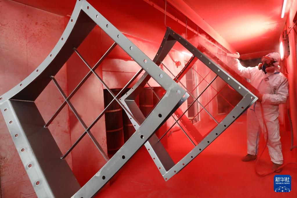 2月5日,河南省焦作市温县经济开发区一家企业的工人在进行喷塑作业。新华社