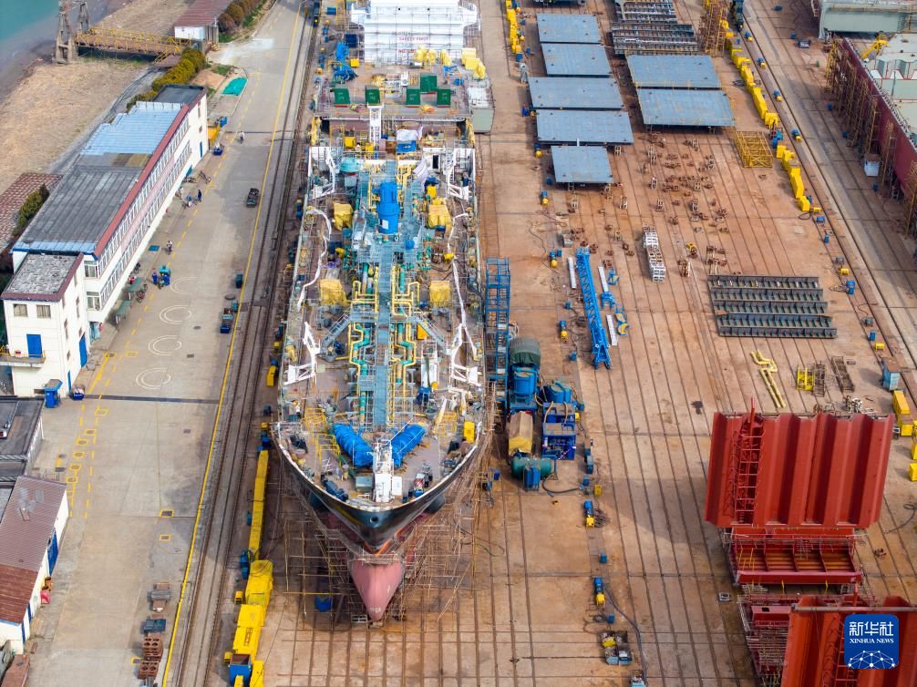 2月5日,工人在位于江苏南京的招商工业南京金陵船厂赶制船舶订单。新华社