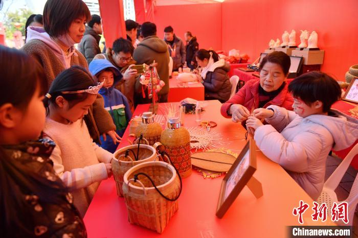 2月9日,“万巳如意福映海峡”2025年元宵节海峡两岸民俗文化活动在福建福州举行,两岸同胞齐聚,“花式”闹元宵。图为福州市罗源县畲族苎布织染缝纫技艺吸引市民。中新社