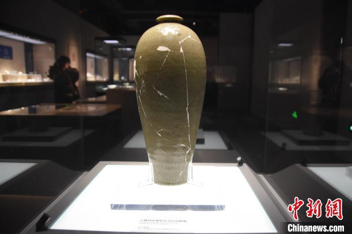 宝丰汝窑博物馆馆藏文物“北宋青釉划花缠枝牡丹纹瓷梅瓶”。