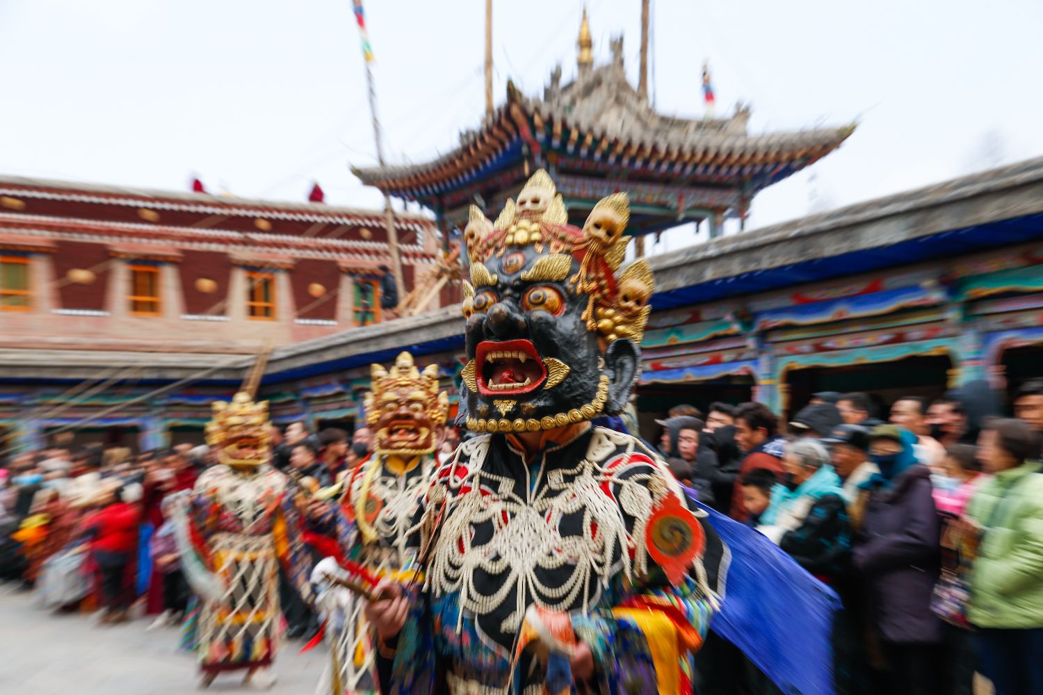 2月11日,位于青海省西宁市湟中区的藏传佛教名刹塔尔寺举行“跳欠”仪式,祈福世界和平、国泰民安。塔尔寺“跳欠”藏语称“羌姆”,可追溯史超过280年。中新社