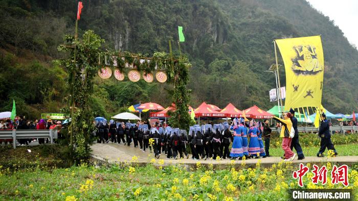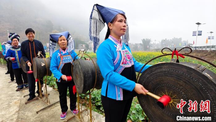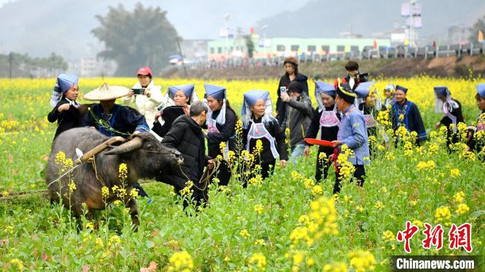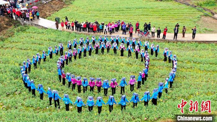 民众在油菜花盛开的田园唱响悦耳的山歌。