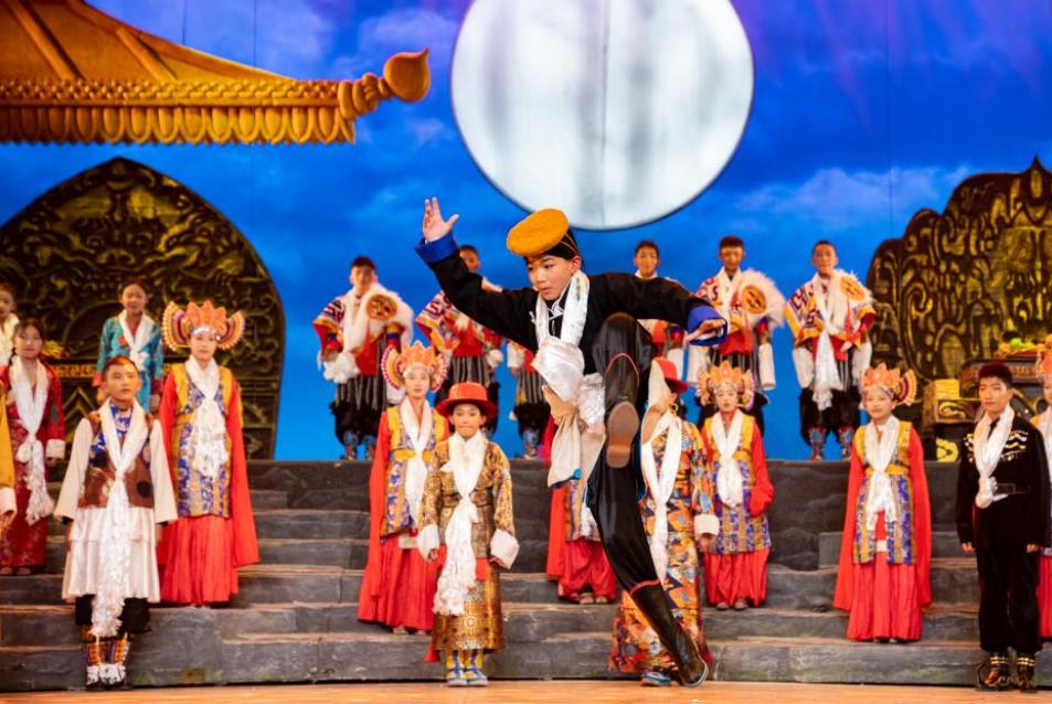 舞台上,小演员用心演绎《顿月顿珠》。