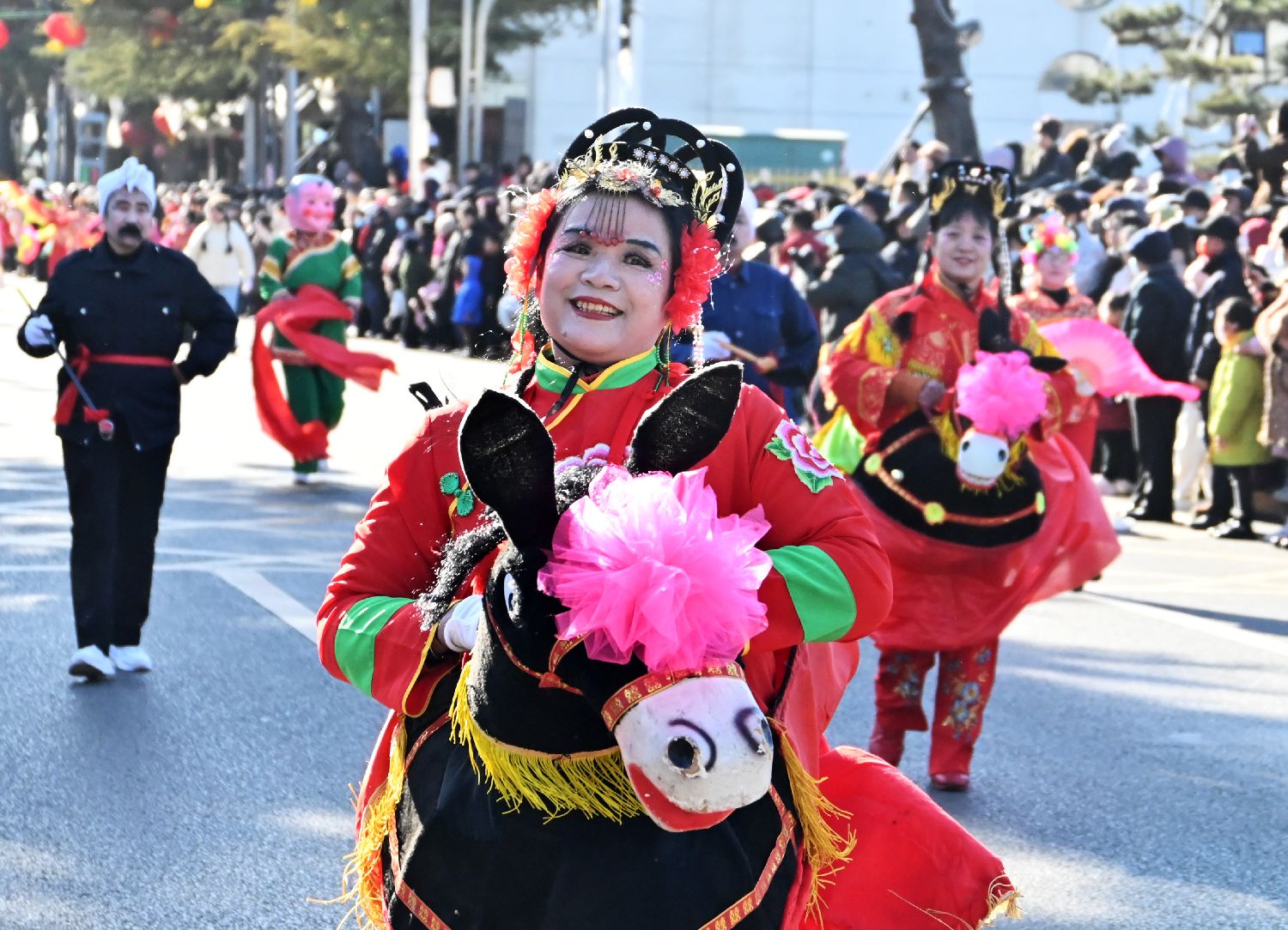 2月13日,河北省石家庄市井陉县举办民间艺术展演活动,2000多名民俗演员尽展才艺。井陉秦时置县,是中国首批千年古县,也是非物质文化遗产大县。图为跑驴表演。中新社