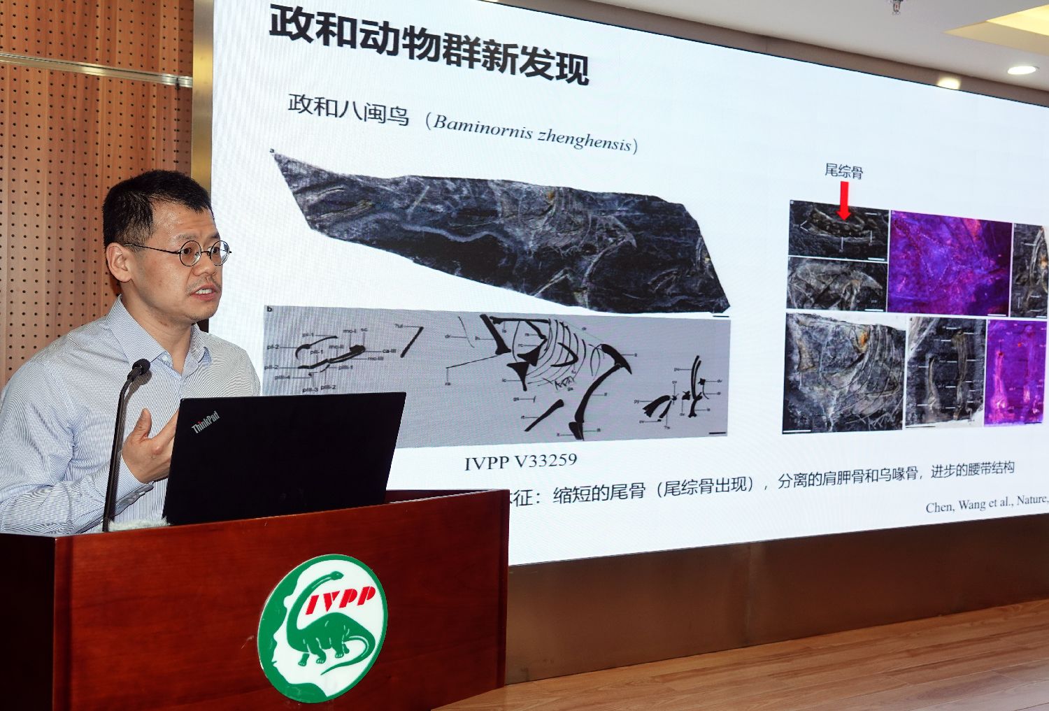 2月10日,中国科学院古脊椎所研究员王敏在北京向媒体介绍“政和八闽鸟”化石发现及研究进展。中新社