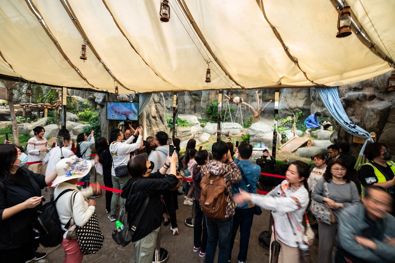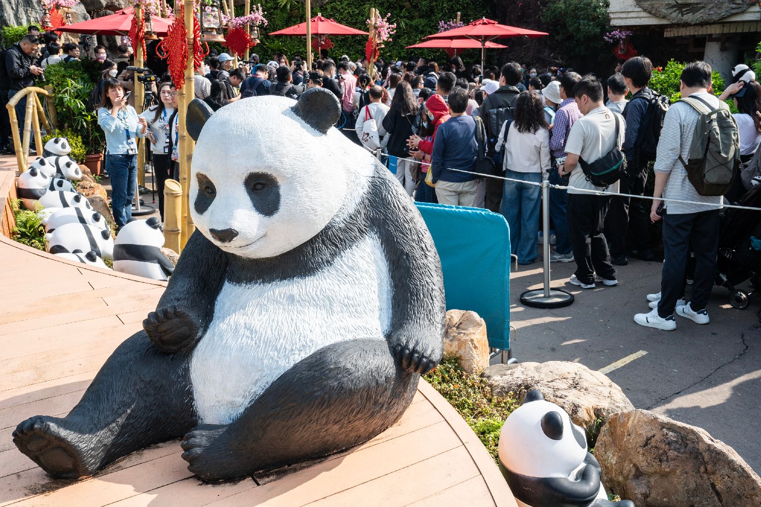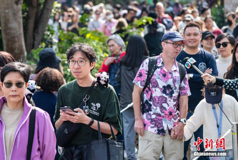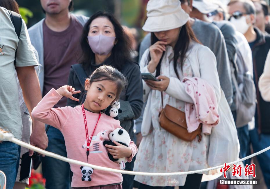 2月16日,市民与游客在大熊猫馆外排队等候入内参观。中新社