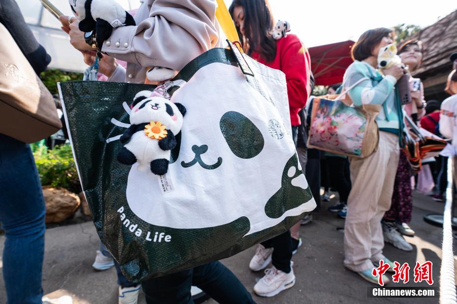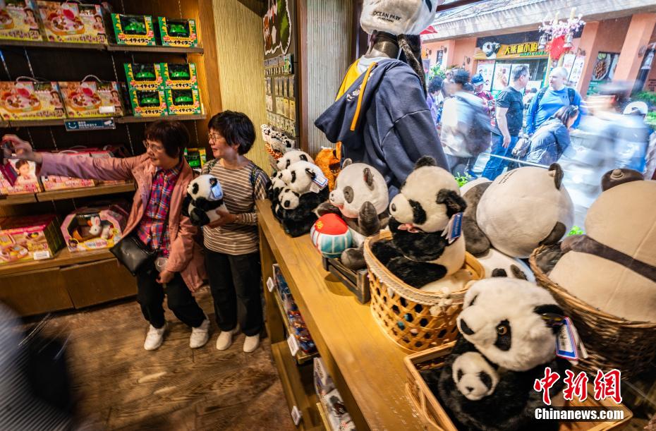 2月16日,市民与游客参观结束后在纪念品店选购大熊猫主题周边产品。中新社