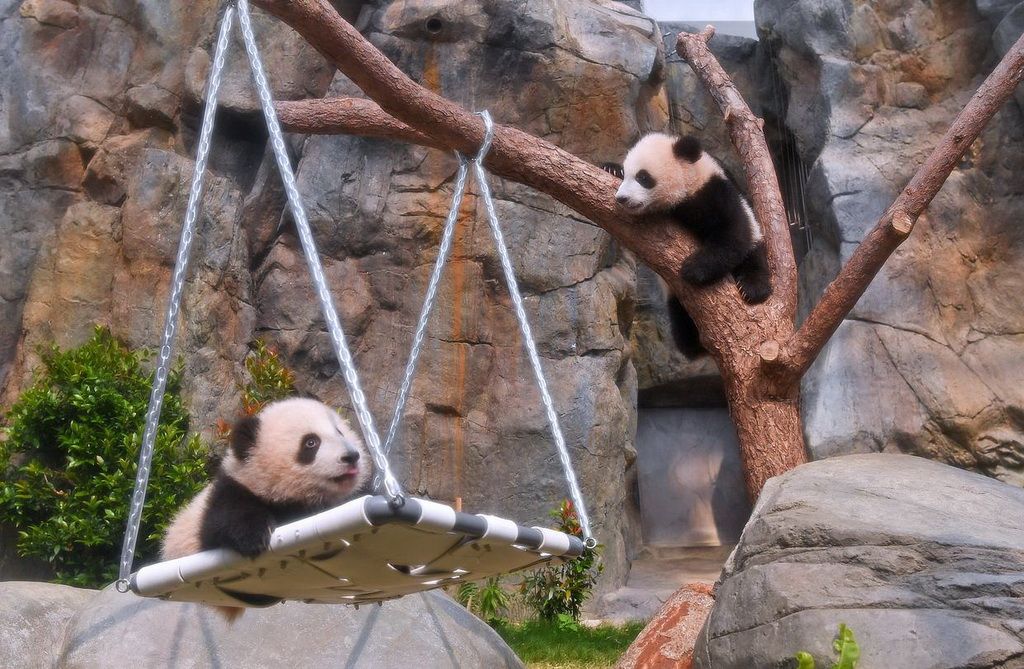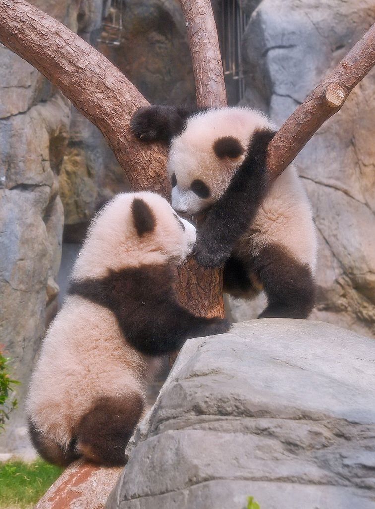15日,香港海洋公园为首对龙凤胎大熊猫宝宝“家姐”“细佬”举行亮相仪式,并庆祝它们半岁生日。16日,“家姐”与“细佬”在香港海洋公园正式与公众见面,吸引众多市民与游客排队参观。图为龙凤胎大熊猫宝宝。新华社