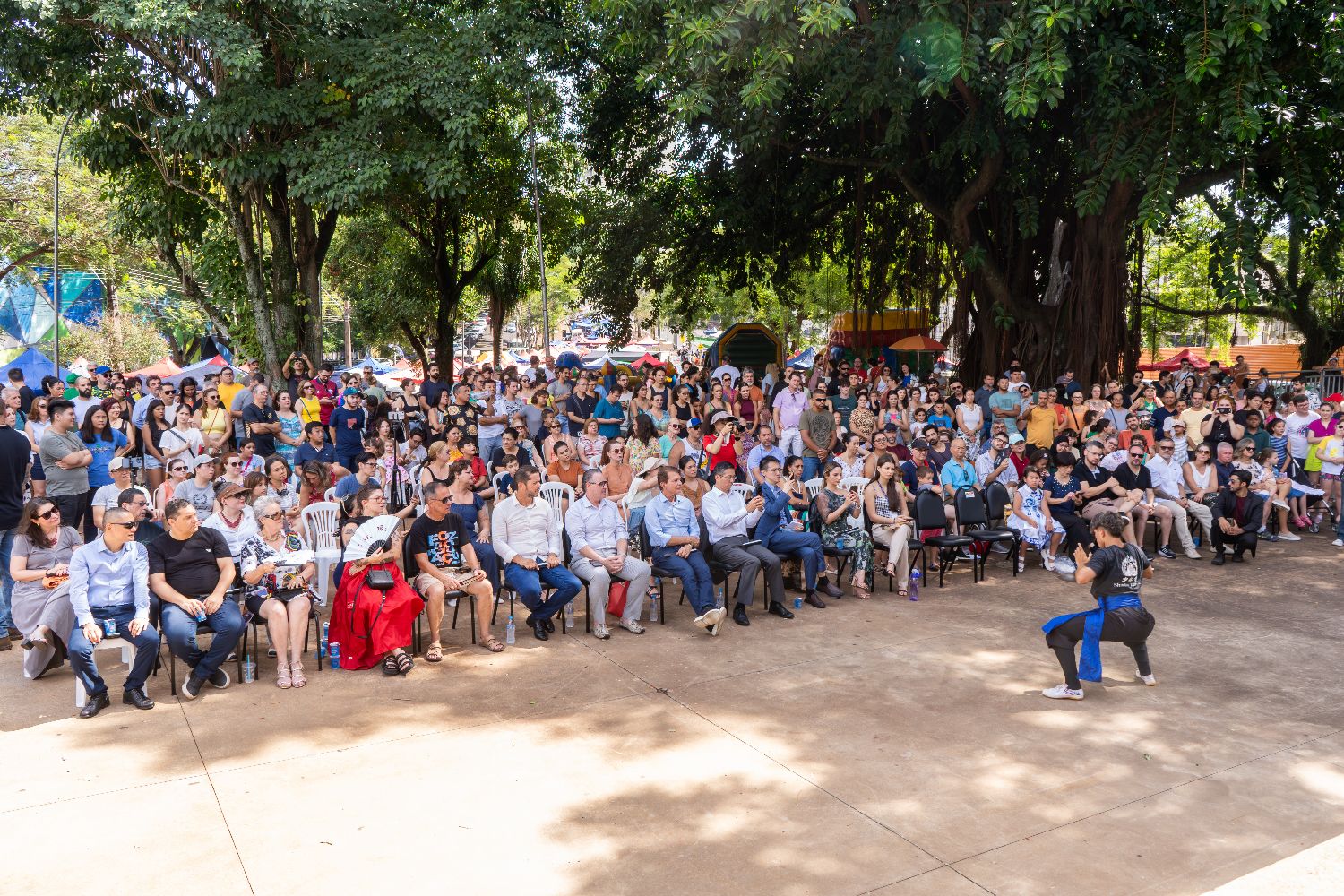 旅居巴西和阿根廷的华侨华人与当地民众观赏“欢乐春节”演出的武术节目。中新社