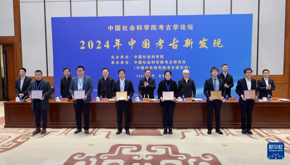 2月19日,2024年中国考古新发现在北京揭晓发布,吉林和龙市大洞旧石器时代遗址、浙江仙居县下汤新石器时代遗址、甘肃临洮县寺洼遗址马家窑文化聚落、陕西宝鸡市周原遗址、安徽淮南市武王墩战国晚期一号墓、江西景德镇市元明清制瓷业遗址群等6个考古项目入选。此外,乌兹别克斯坦蒙扎铁佩遗址入选2024年中国考古新发现的国外考古新发现项目。图为2月19日,获评“2024年中国考古新发现”项目代表在论坛现场获颁证书。新华社