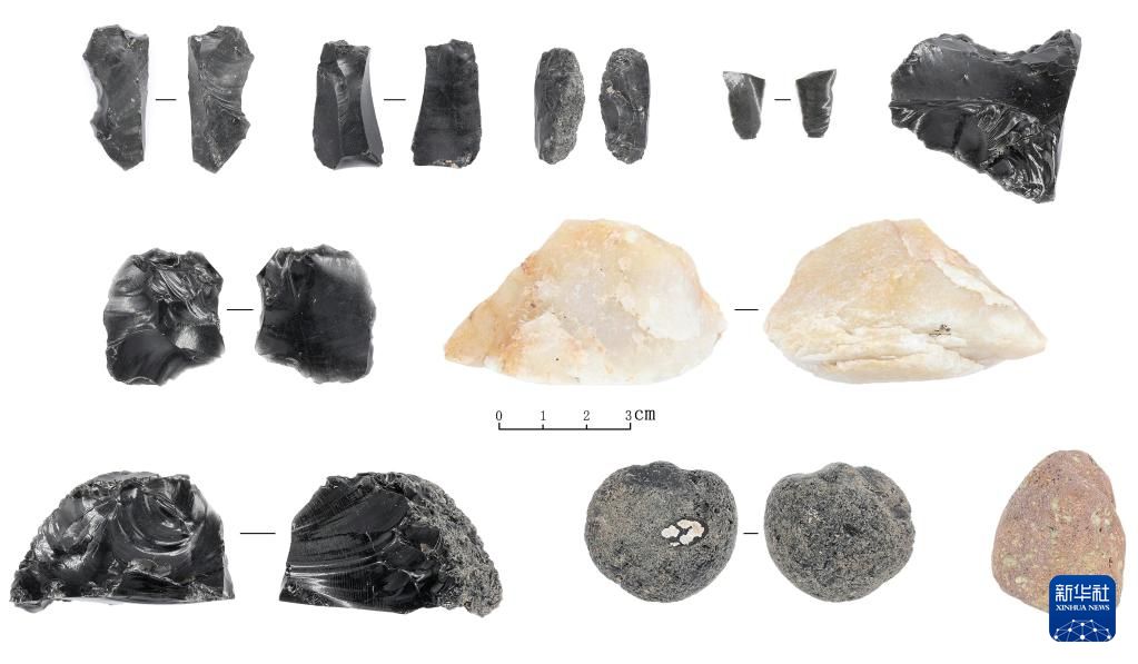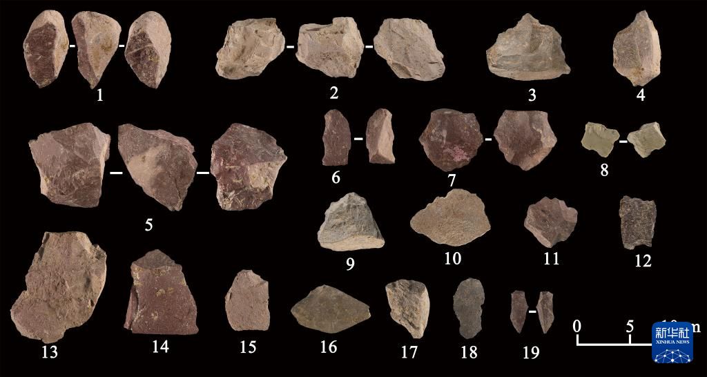 吉林和龙市大洞旧石器时代遗址第一阶段出土的石制品(资料照片)。新华社