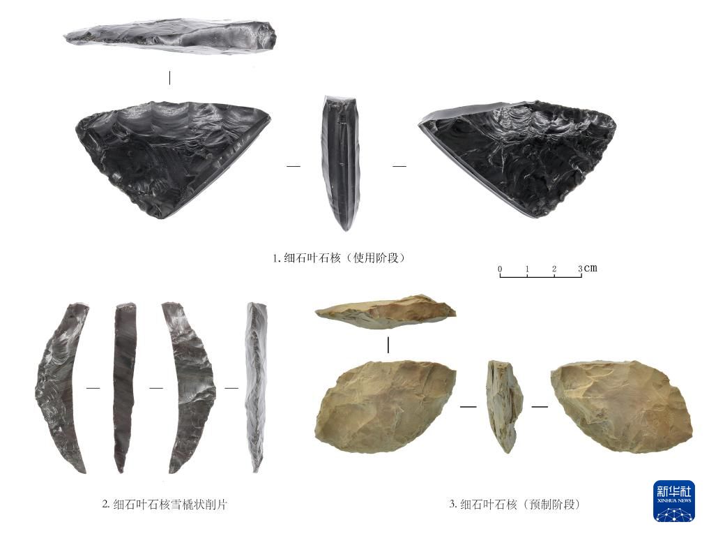 吉林和龙市大洞旧石器时代遗址第三阶段出土的细石叶技术产品(资料照片)。新华社