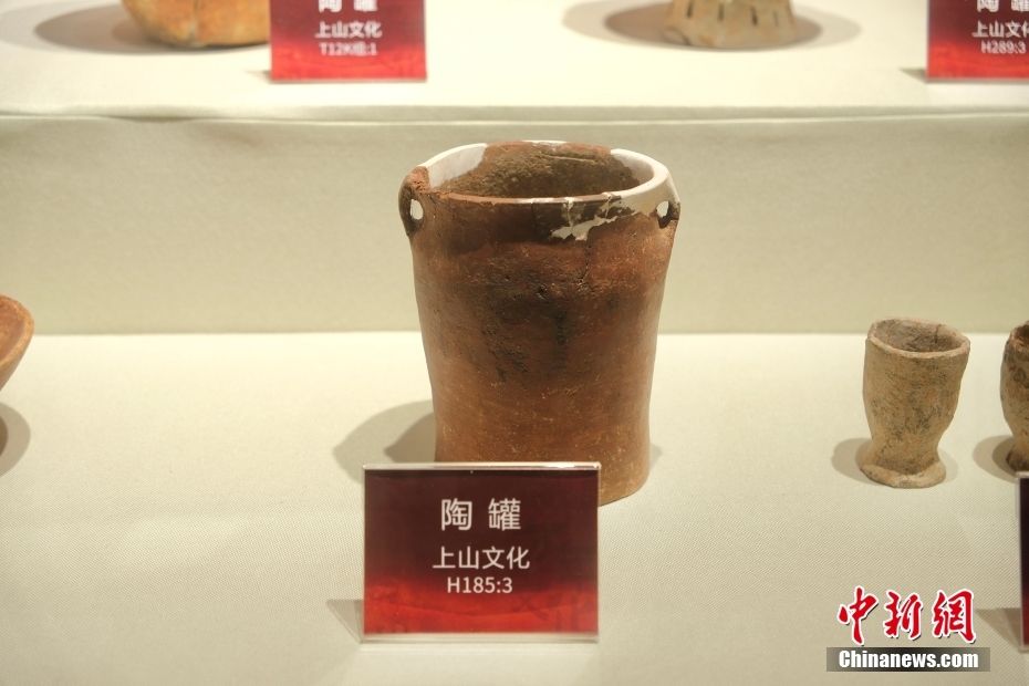 浙江仙居下汤遗址出土的筒形罐。中新网