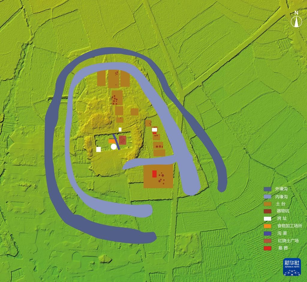 甘肃临洮县寺洼遗址地形及主要发现位置示意图。新华社