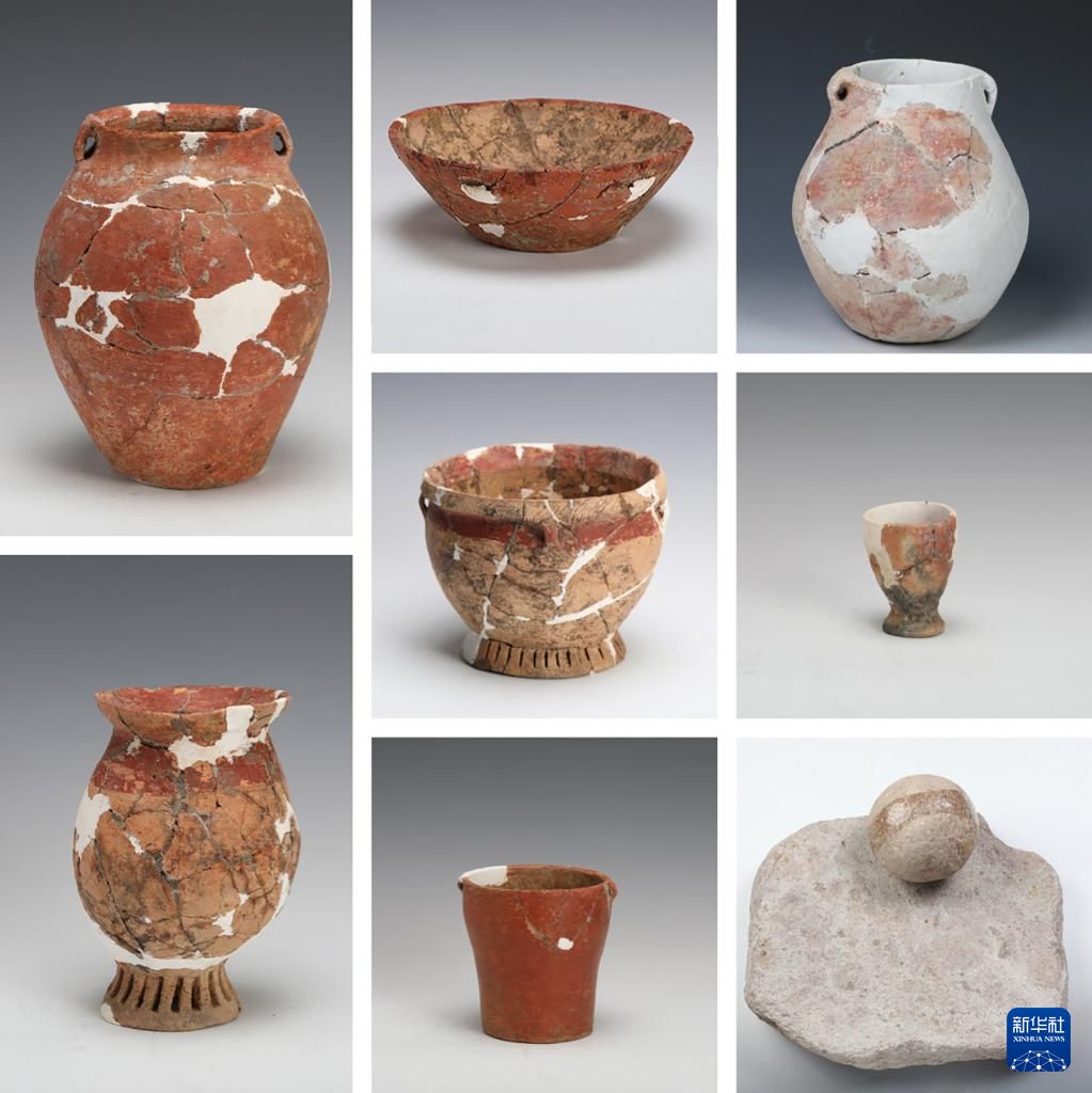 浙江仙居县下汤遗址出土的器物(拼版照片,资料照片)。新华社