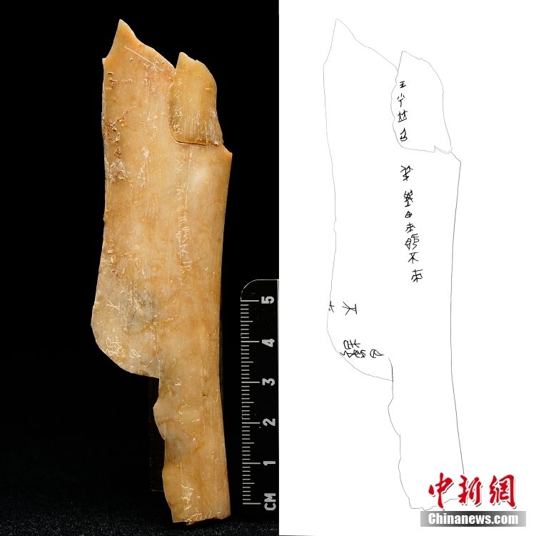 陕西宝鸡市周原遗址出土有“王乎”字样的甲骨。陕西省考古研究院供图/中新网