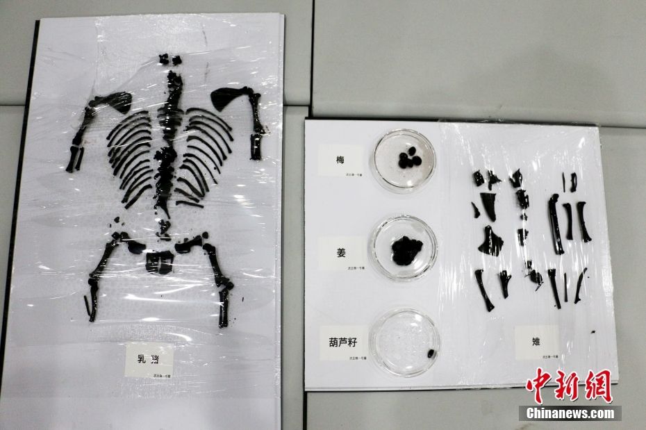 安徽淮南武王墩墓出土的部分动植物遗存。中新网