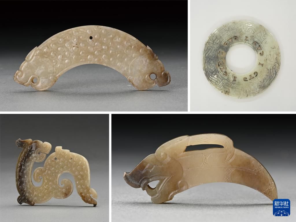 安徽淮南市武王墩战国晚期一号墓出土的玉器(拼版照片,资料照片)。新华社