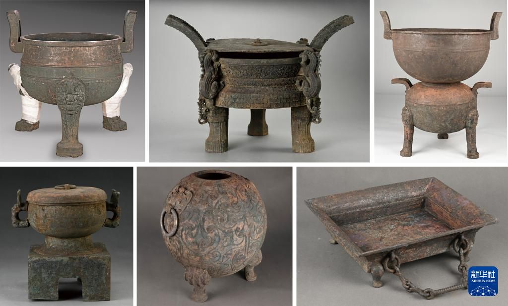 安徽淮南市武王墩战国晚期一号墓出土的铜器(拼版照片,资料照片)。新华社