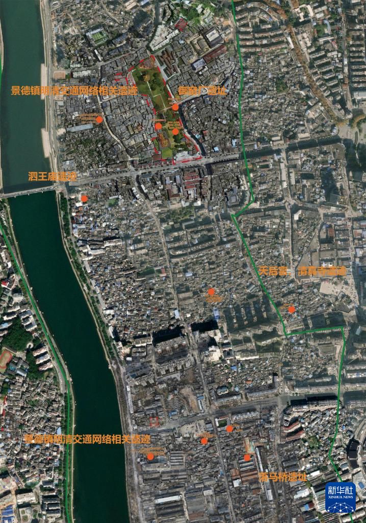 江西景德镇市元明清制瓷业遗址群2024年镇区发掘点位置示意图。新华社