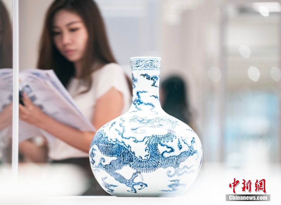 中国国家一级文物、明永乐年间景德镇御窑“青花云龙纹天球瓶”。中新网
