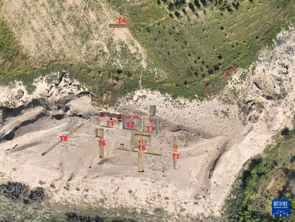 乌兹别克斯坦蒙扎铁佩遗址探方及遗迹分布图。新华社