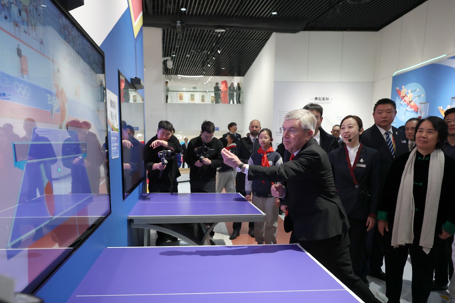 巴赫体验虚拟乒乓球。中新社