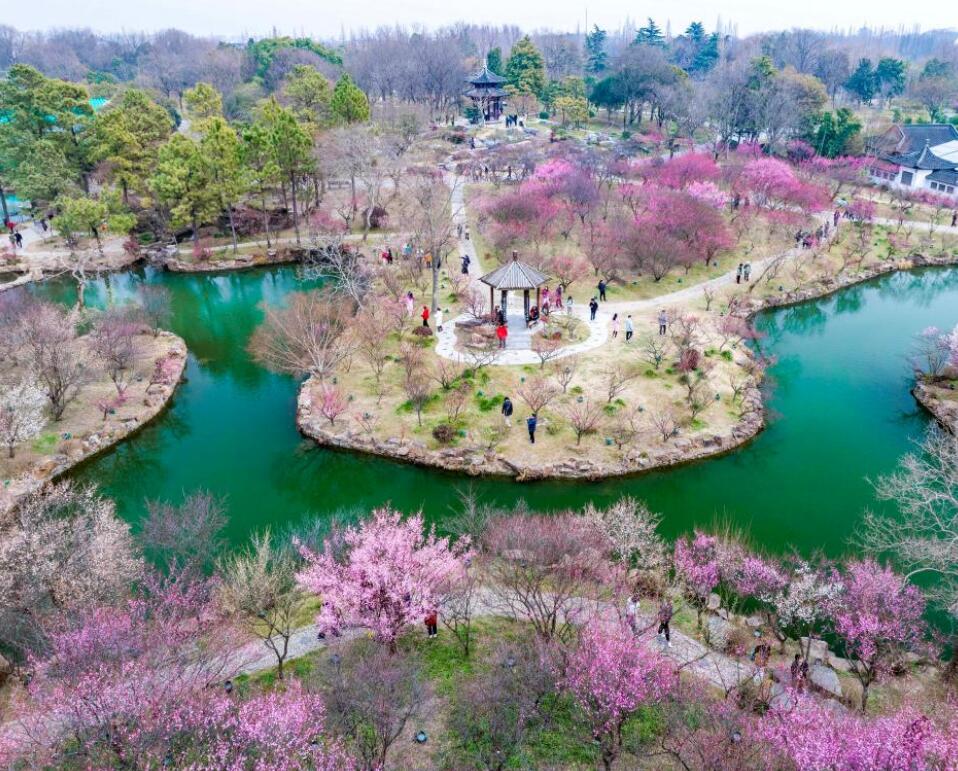 2月24日,游客在江苏扬州瘦西湖风景区赏梅游玩。新华社