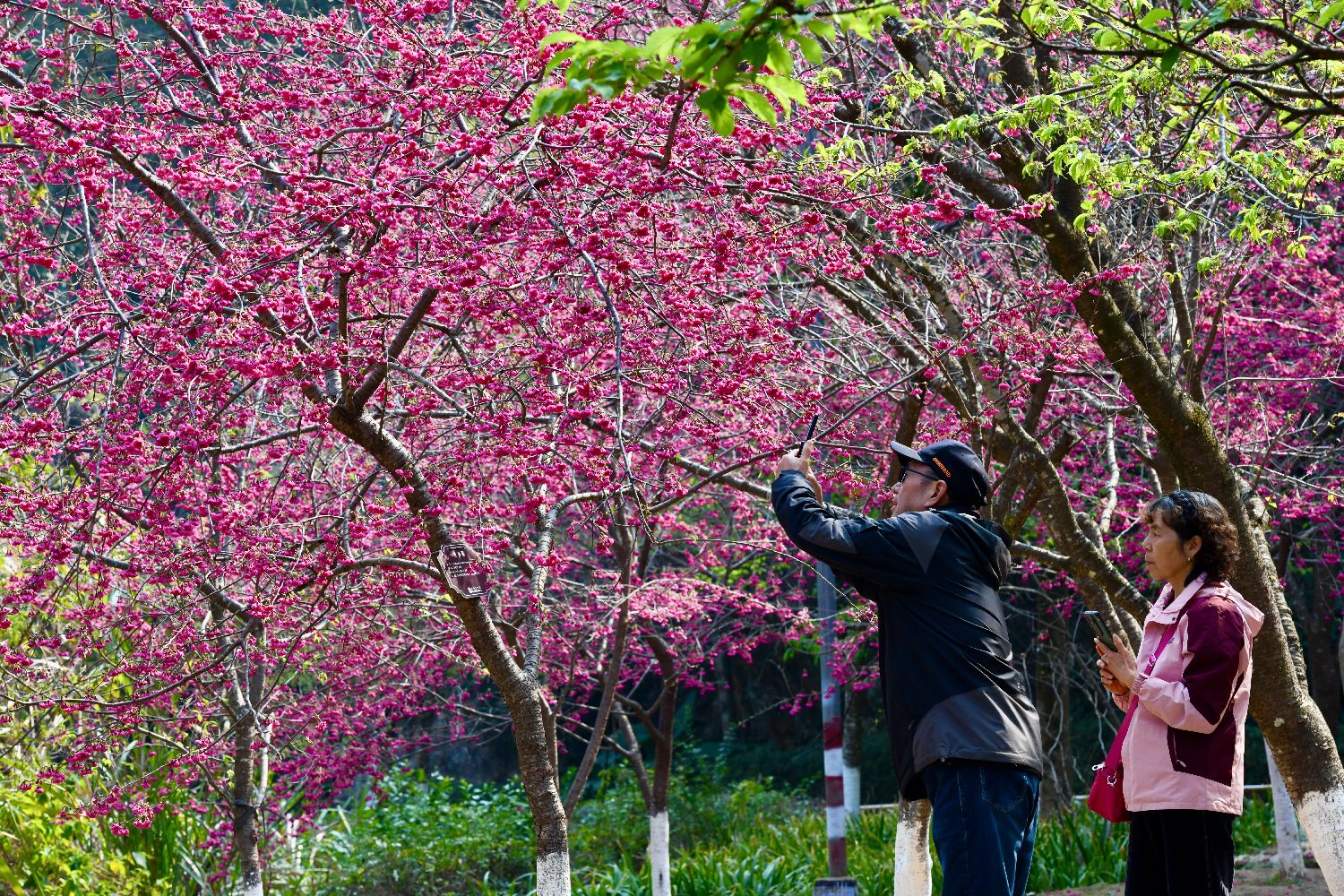 中国神州大地春意渐浓,人们拥抱自然,享受春日美好时光。图为2月24日,市民在福建福州森林公园观赏樱花。每年春季,福州国家森林公园里的樱花都会如期绽放,吸引许多摄影爱好者和游客前来捕捉这份转瞬即逝的美丽。中新社