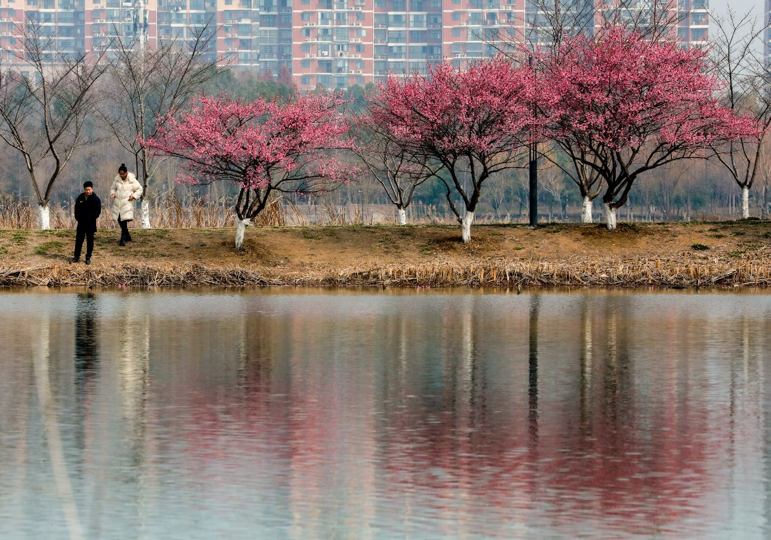 2月24日,湖北武汉竹叶海公园梅花盛开,吸引众多市民前来踏春赏景。中新社