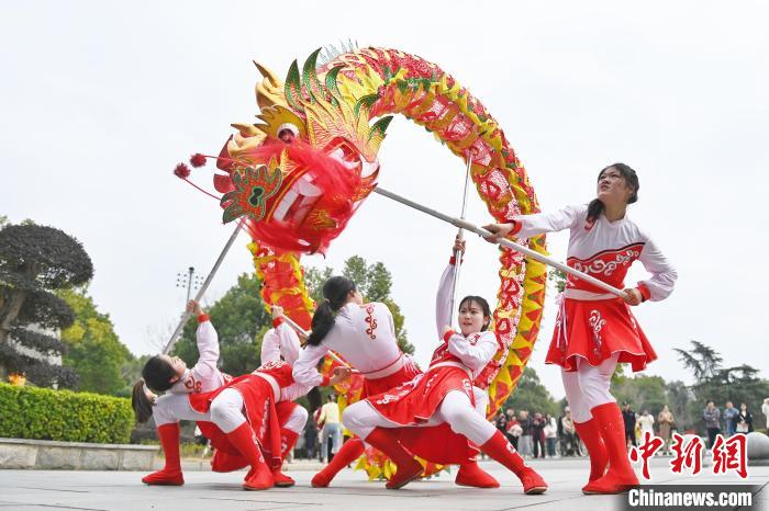 女大学生进行舞龙表演。中新网