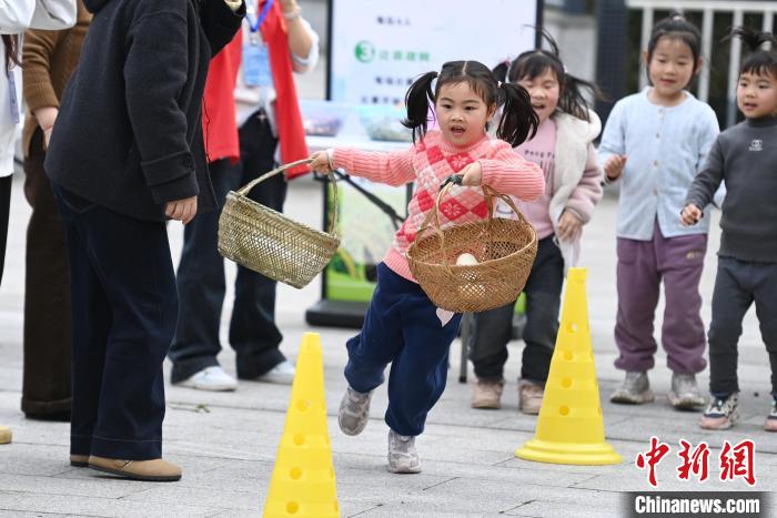 幼儿园小朋友体验运蔬菜接力赛。中新网