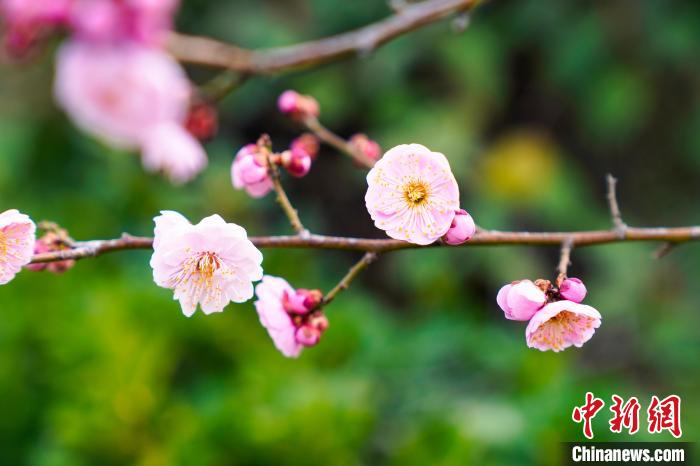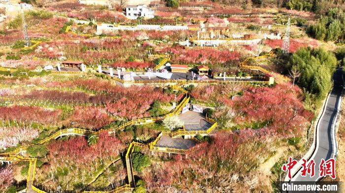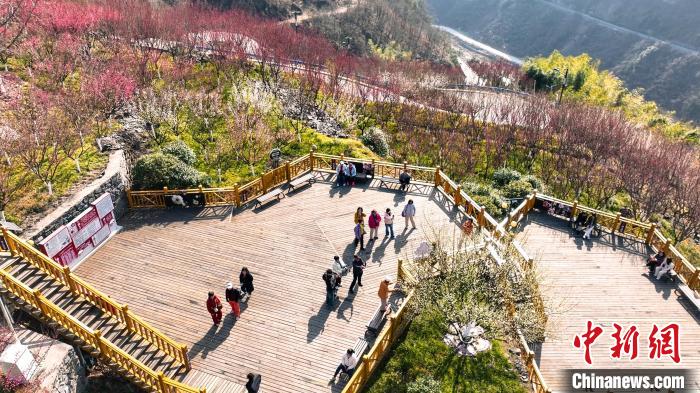 梅子镇子午梅苑百亩梅花竞相开放。中新网