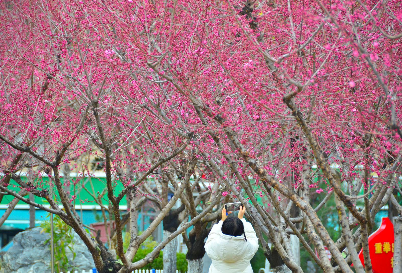 陕西省西安市开元公园梅花谷里的梅花一时间肆意绽放。吸引市民游客纷至沓来,拍照留念。“西安发布”百度百家号