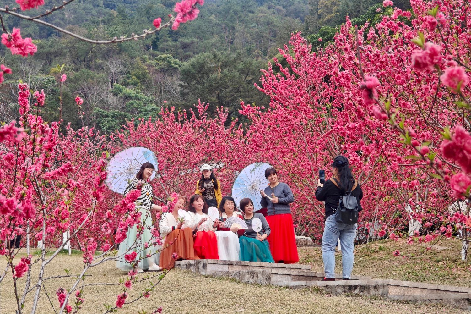 3月3日,福州国家森林公园桃花陆续绽放,许多市民和游客前去赏花。中新网