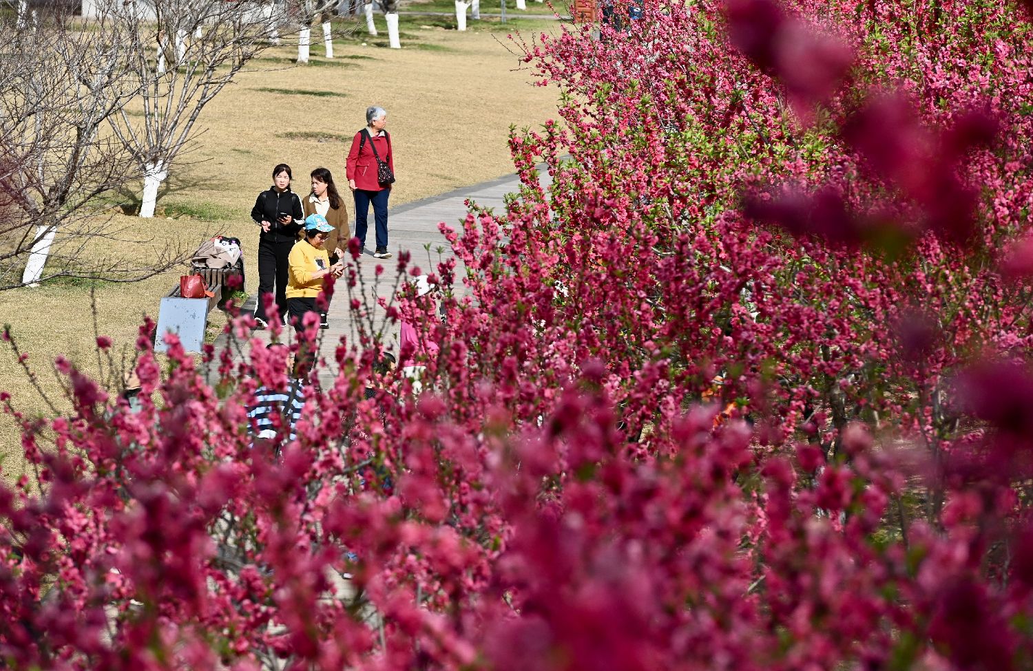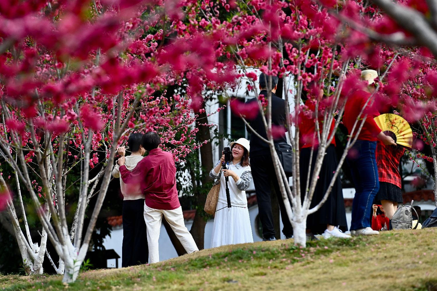 3月3日,福州国家森林公园桃花陆续绽放,吸引许多市民和游客前去赏花。中新社