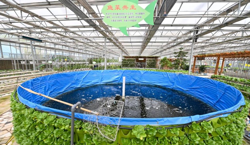 运城市新绛县泉掌镇王守庄村的山西瑞恒农业股份有限公司蔬菜高新技术示范园内的鱼菜共生系统。
