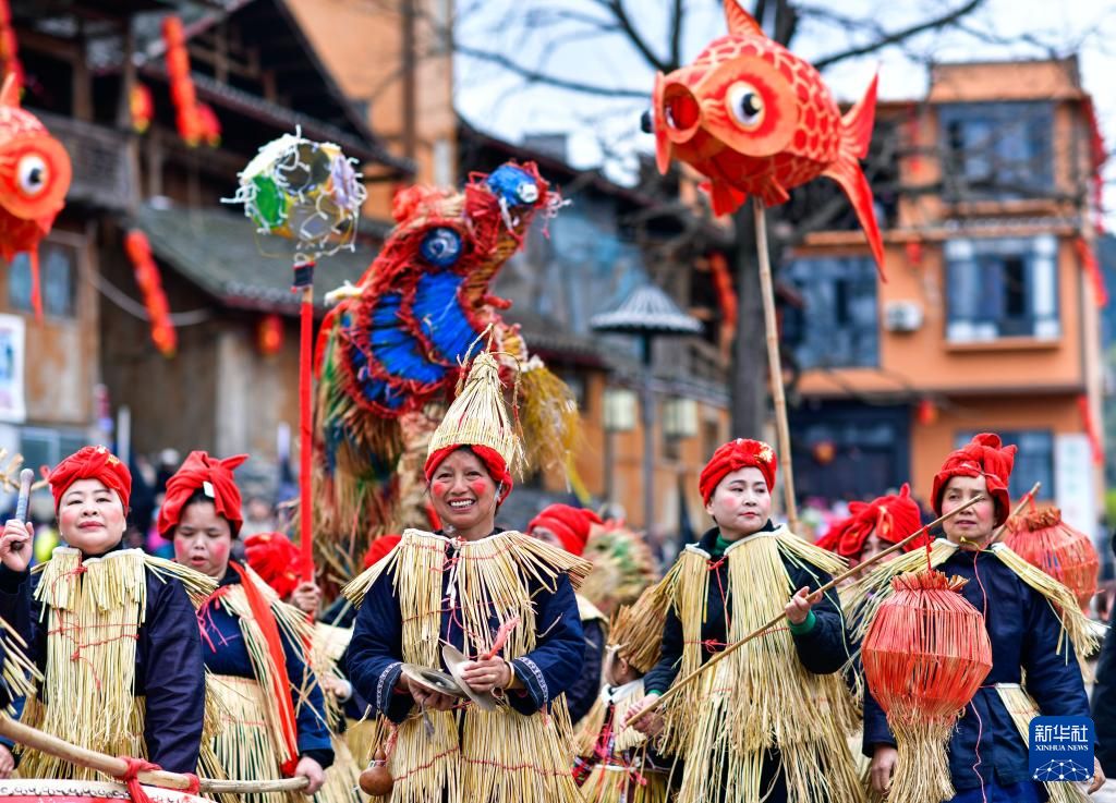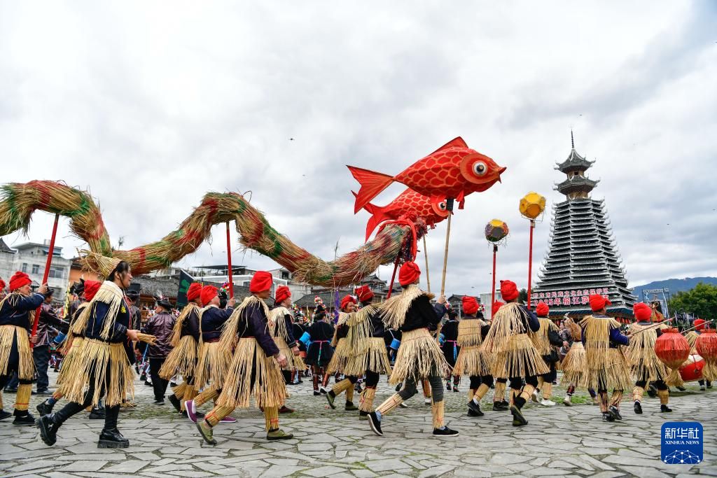 3月15日,当地民众在贵州省榕江县三宝侗寨“萨玛节”活动中舞稻草龙。