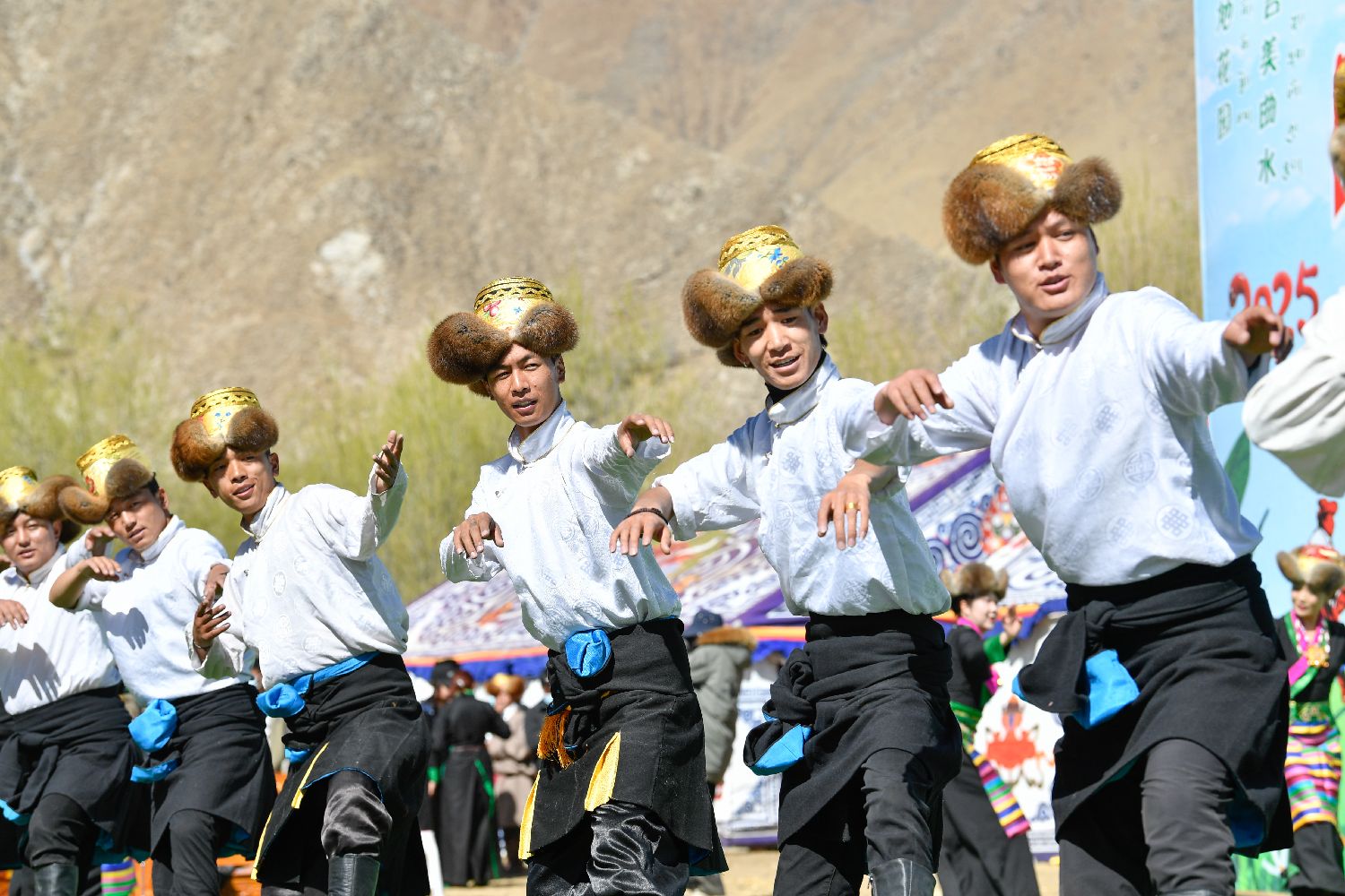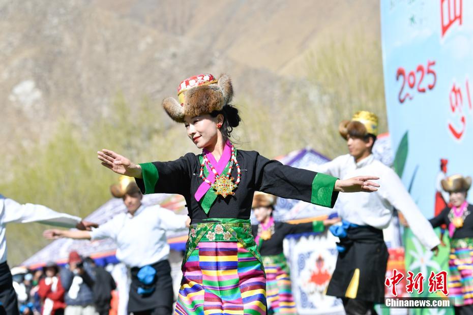 3月16日,拉萨市曲水县色达村春耕仪式现场,当地民众表演舞蹈《阿吉宗巴》。中新网