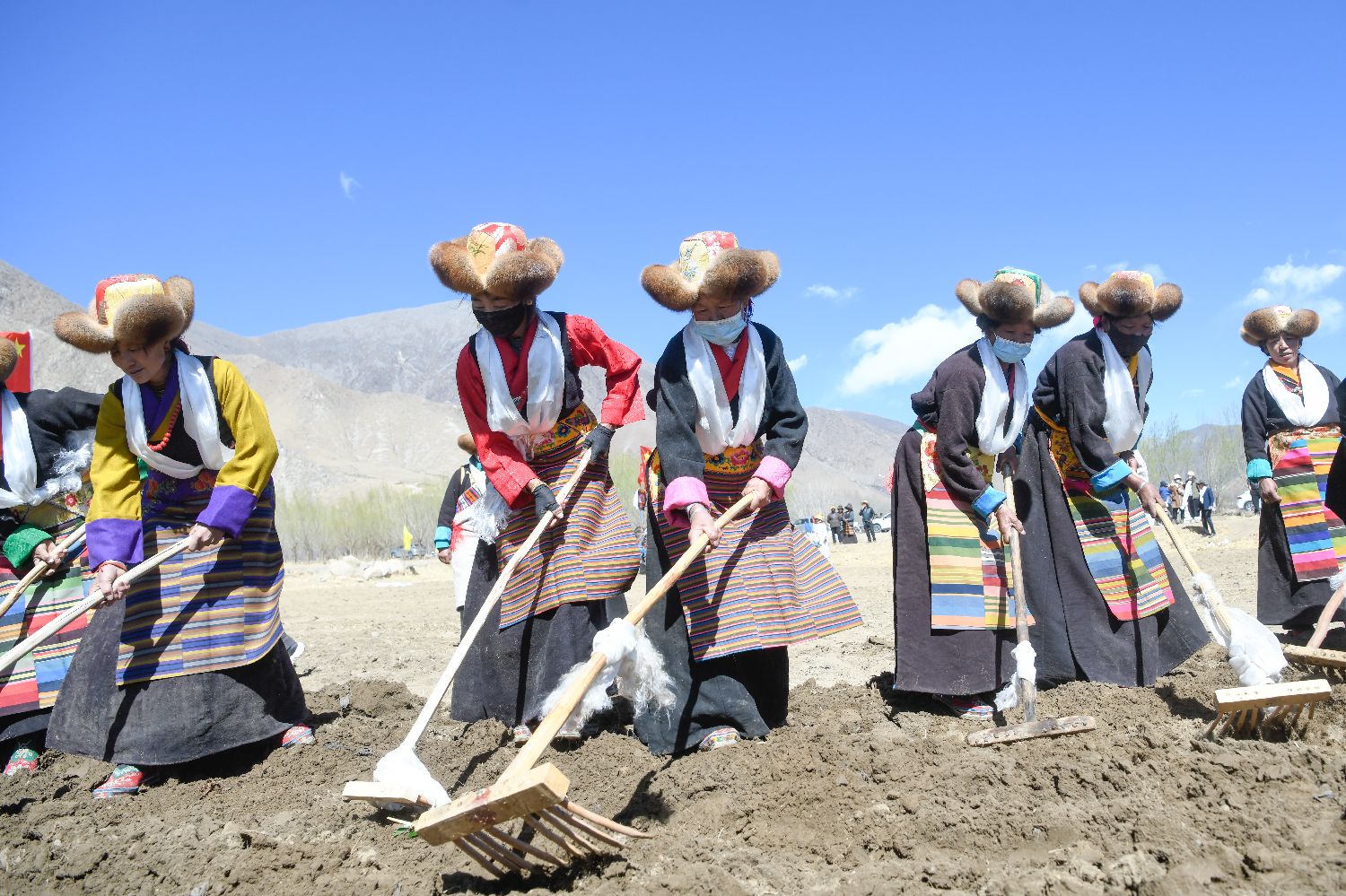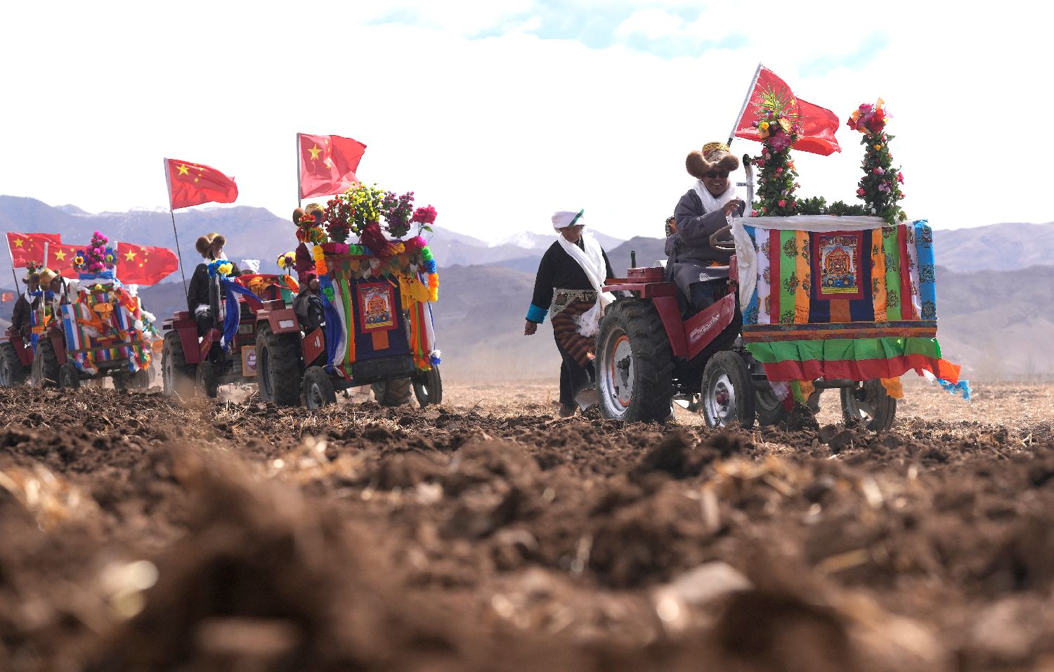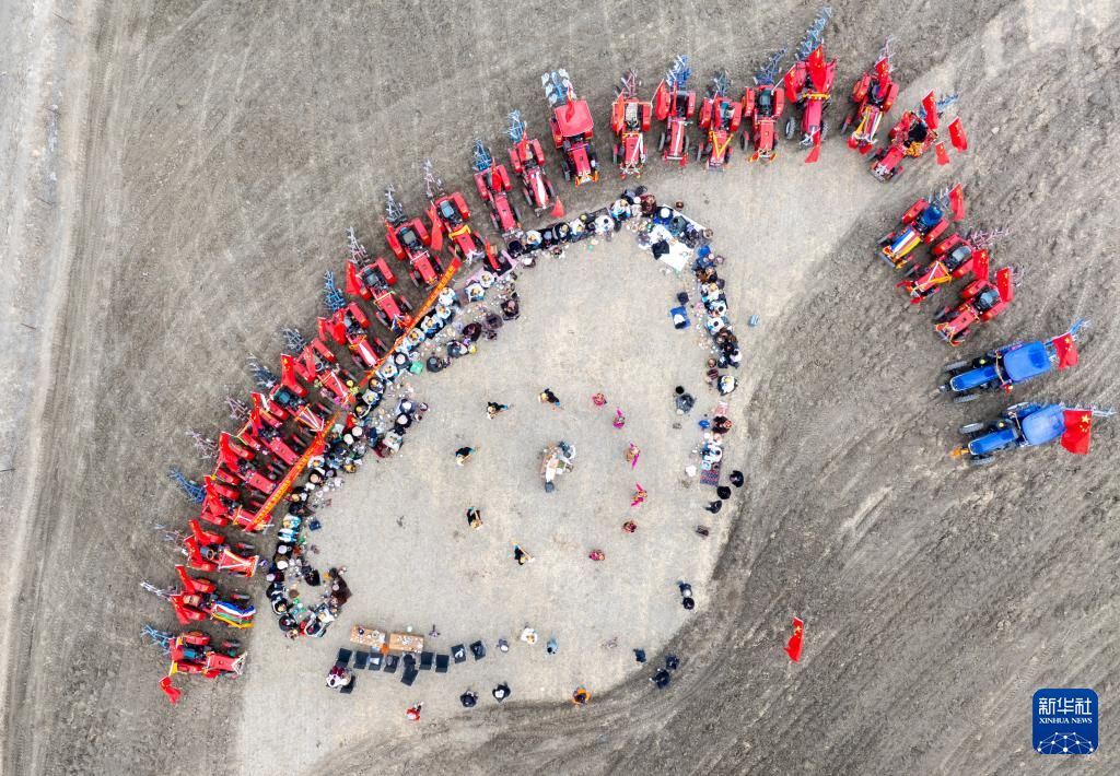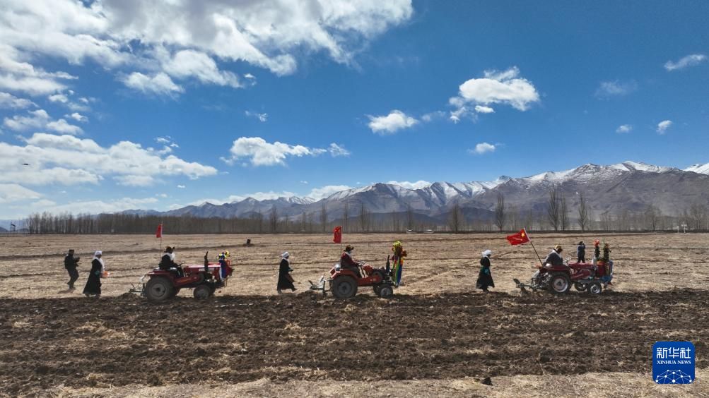 根据西藏传统天文历算推算,3月16日西藏各地农区举行春耕大典。按照传承千年的春耕民俗,农民身着节日盛装,在田间地头忙碌,播撒希望的种子。别具一格的民族服饰和仪式与现代机械融合,在高原形成生机勃勃的画卷。新一年的丰收征程就此拉开序幕。图为3月16日,拉萨市曲水县色达村春耕仪式现场,村民身着节日盛装,相聚在田间,载歌载舞,迎接春耕第一犁。中新社