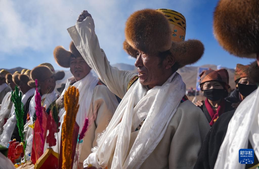 3月16日,拉孜县曲下镇土林村村民身着节日盛装参加春耕典礼。新华社