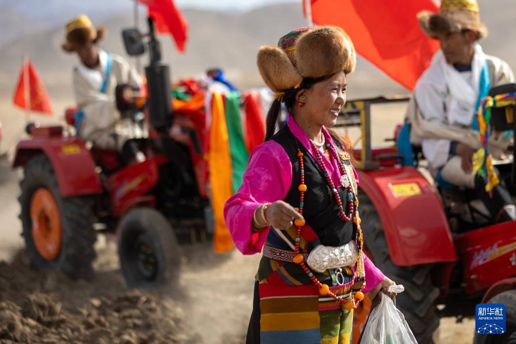 3月16日,西藏拉孜县曲下镇土林村春耕典礼现场。新华社