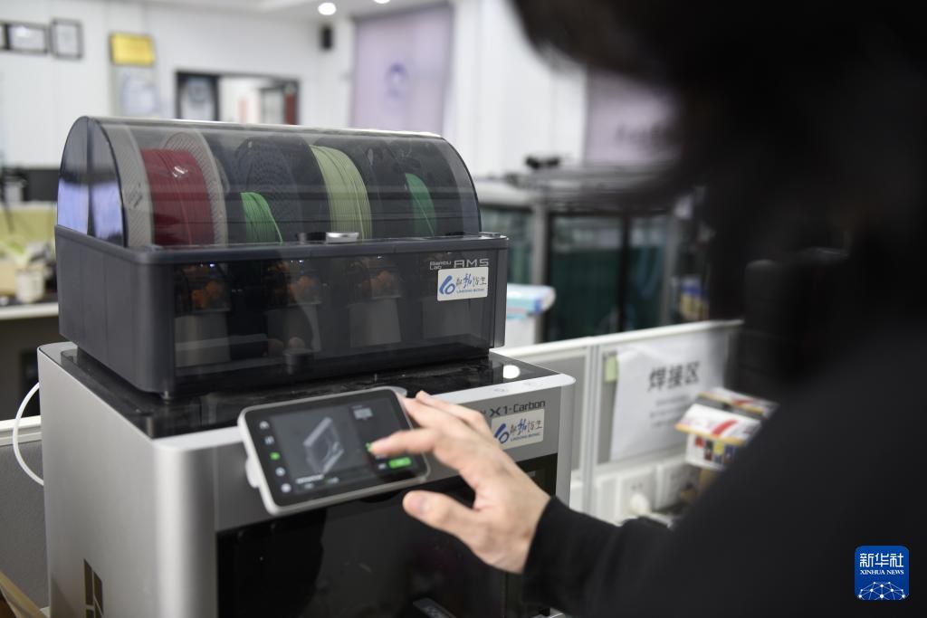 3月18日,工作人员在沈阳粼动仿生科技有限公司内操作3D打印机。