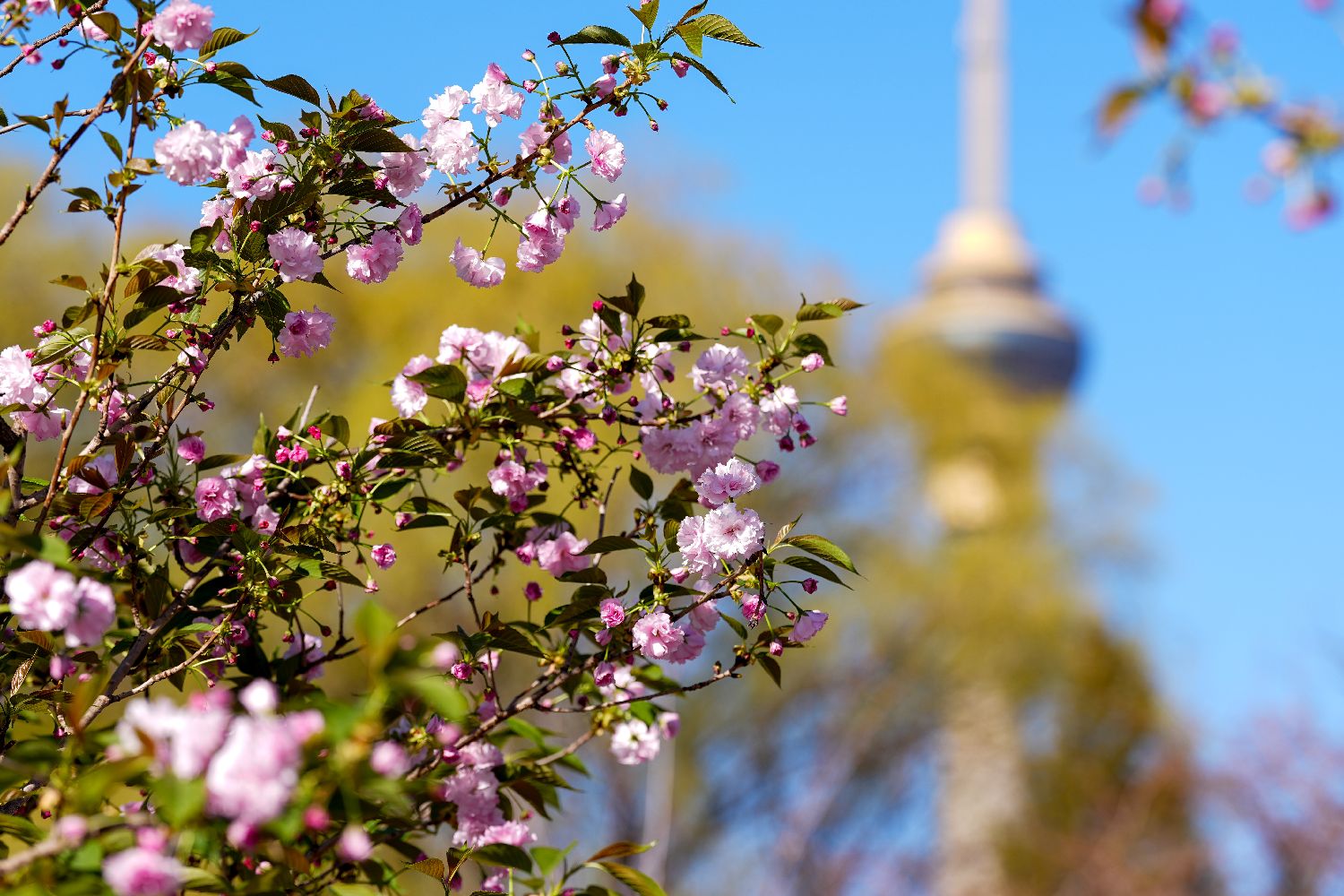 春风柔,百花开。随着中国各地气温持续回升,各色鲜花争相开放,人们走出家门踏青、赏花,感受烂漫春光。图为3月19日,北京玉渊潭公园内樱花绽放,与中央电视塔“同框”。中新社